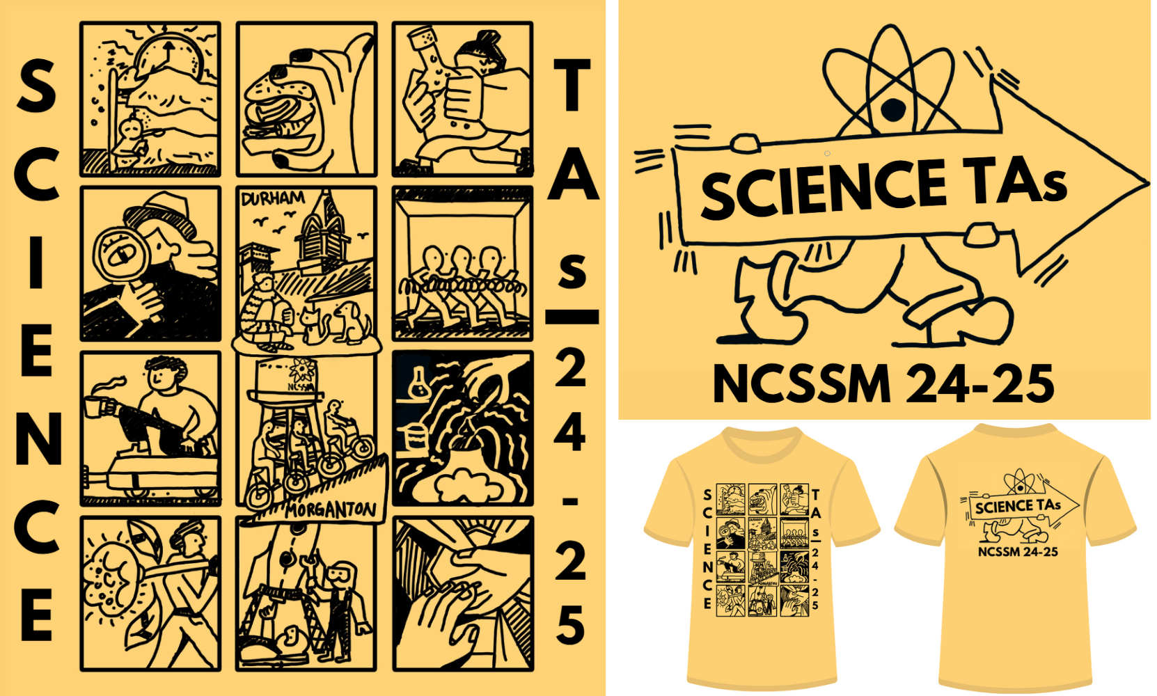 Chosen as the winning shirt design for science TAs, Garden TAs, and Science Communicators on NCSSM-Durham and -Morganton campuses