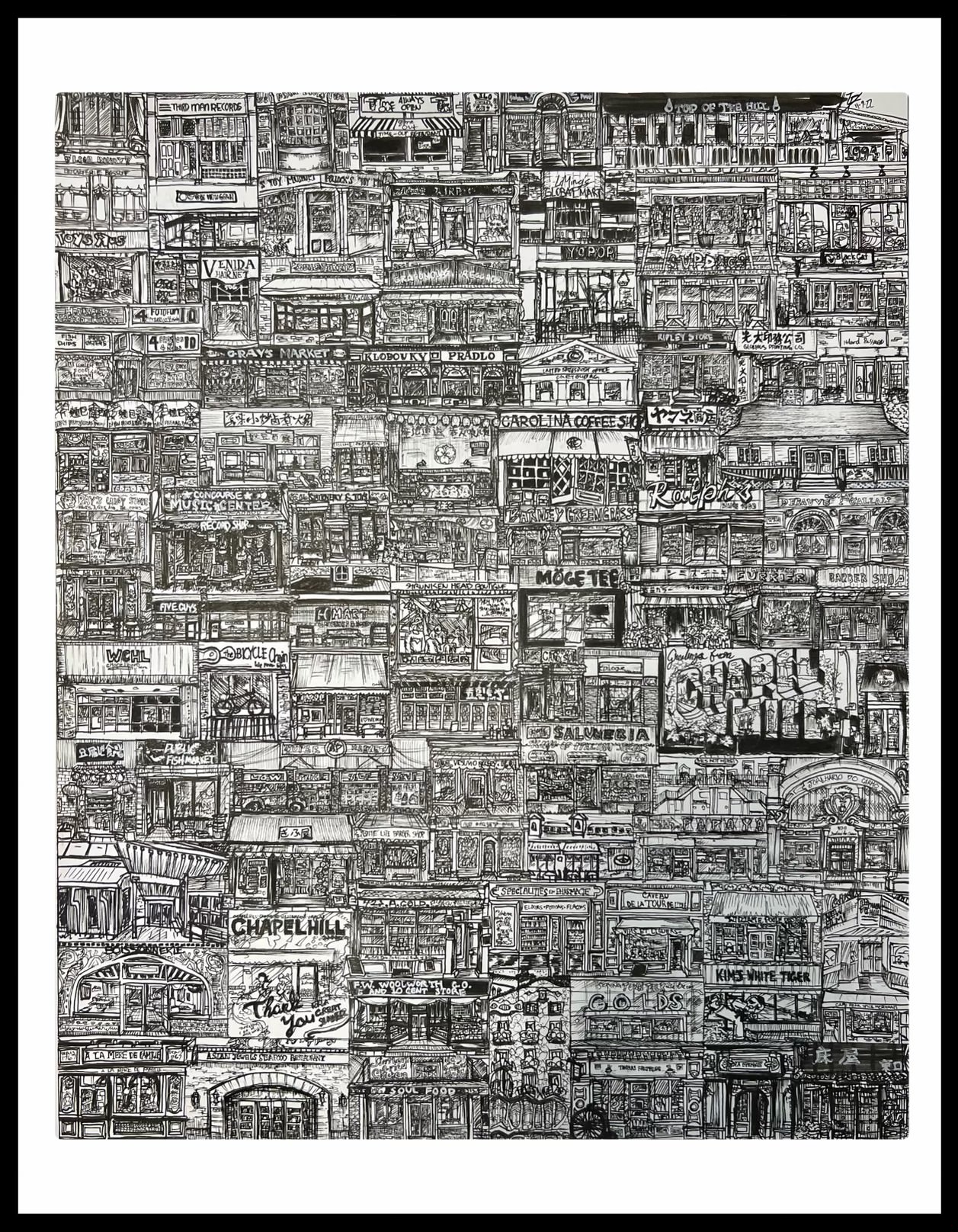 Since the pandemic started, I’ve always paid attention to my hometown’s small businesses. Some of my favorite small businesses closed because of the pandemic, worsened by the rising costs of inflation. These businesses are places of my childhood, where I grew up in, ate at, and are forever memorialized in my heart. In my artwork, “Small Businesses in My Hometown,” I illustrated 88 storefronts from my memories to commemorate the past, celebrate the present, and welcome the incoming small businesses.